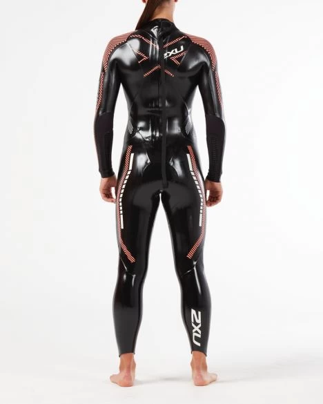 De 2XU Propel pro lange mouw wetsuit zwart/rood dames levert superieure snelheid en flexibiliteit en is het ultieme wetsuit voor de elite triatleet.